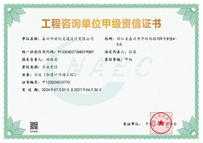 6月28日,中國(guó)工程咨詢(xún)協(xié)會(huì)發(fā)布《中國(guó)工程咨詢(xún)協(xié)會(huì)公告2024年第6號(hào)》文,公告了2024年第一批次符合甲級(jí)資信評(píng)價(jià)標(biāo)準(zhǔn)的工程咨詢(xún)單位名單,世紀(jì)設(shè)計(jì)成功被評(píng)價(jià)為水運(yùn)(含港口河海工程)專(zhuān)業(yè)工程咨詢(xún)單位甲級(jí)資信企業(yè),喜獲工程咨詢(xún)單位甲級(jí)資信證書(shū),標(biāo)志著世紀(jì)設(shè)計(jì)在全省范圍內(nèi)成為少數(shù)同時(shí)擁有水運(yùn)專(zhuān)業(yè)設(shè)計(jì)甲級(jí)和專(zhuān)業(yè)資信甲級(jí)資質(zhì)的“雙甲級(jí)”設(shè)計(jì)咨詢(xún)企業(yè)之一。
